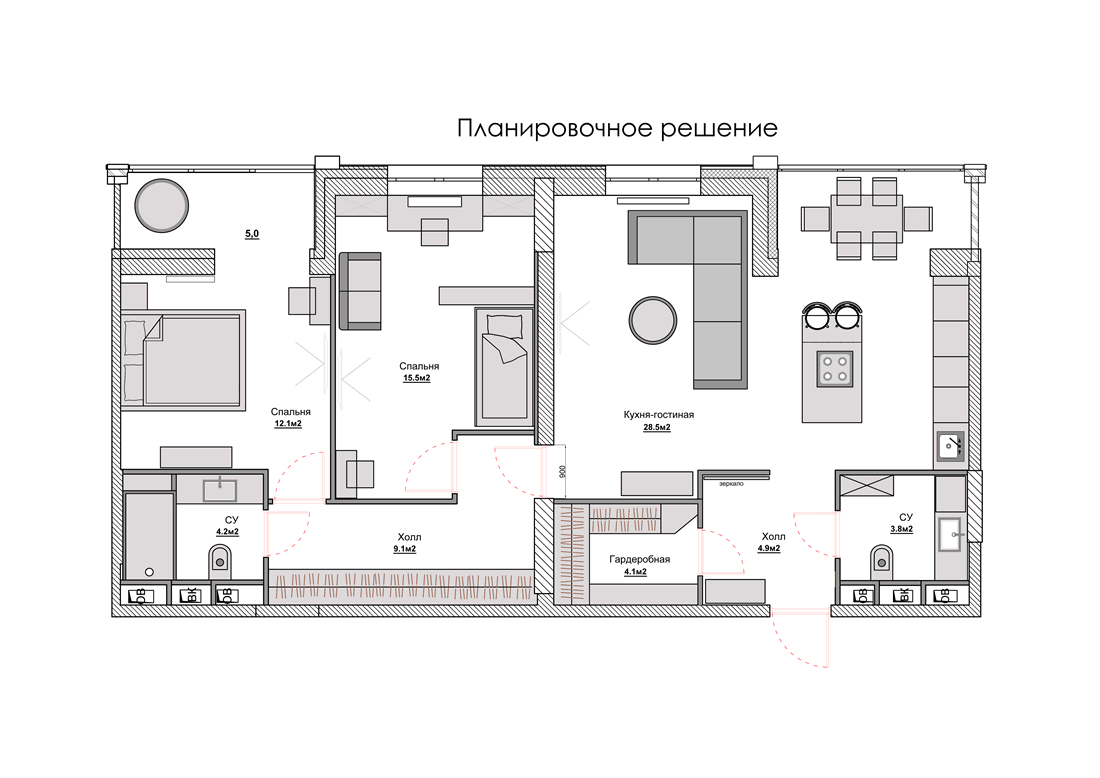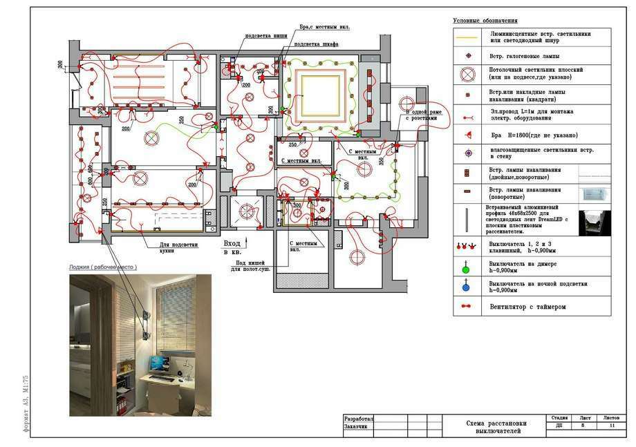 16. Развертка стен всех помещений с привязкой электроустановочных приборов